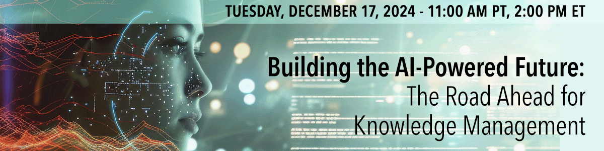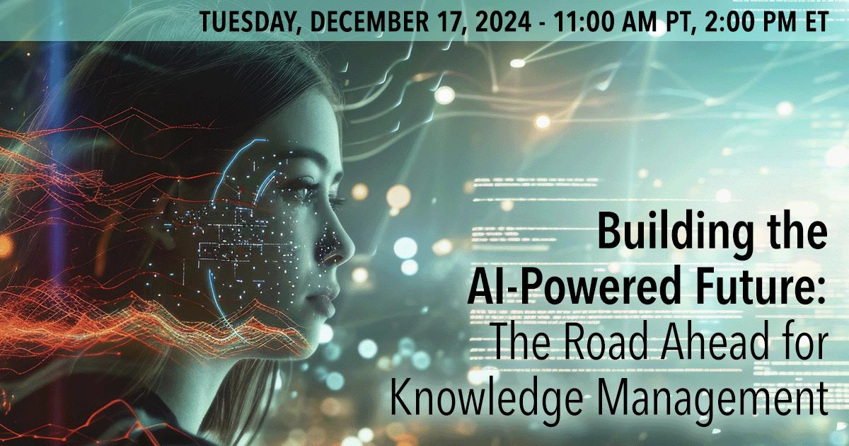 Don't miss this live event on Tuesday, December 17th, 11:00 AM PT / 2:00 PM ET. Register Now to attend the webinar Building the AI-Powered Future: The Road Ahead for Knowledge Management.